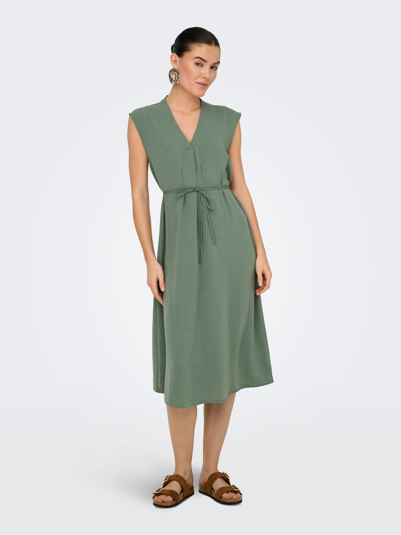 Potrivire regulată V-gât Umeri căzuți Rochie midi