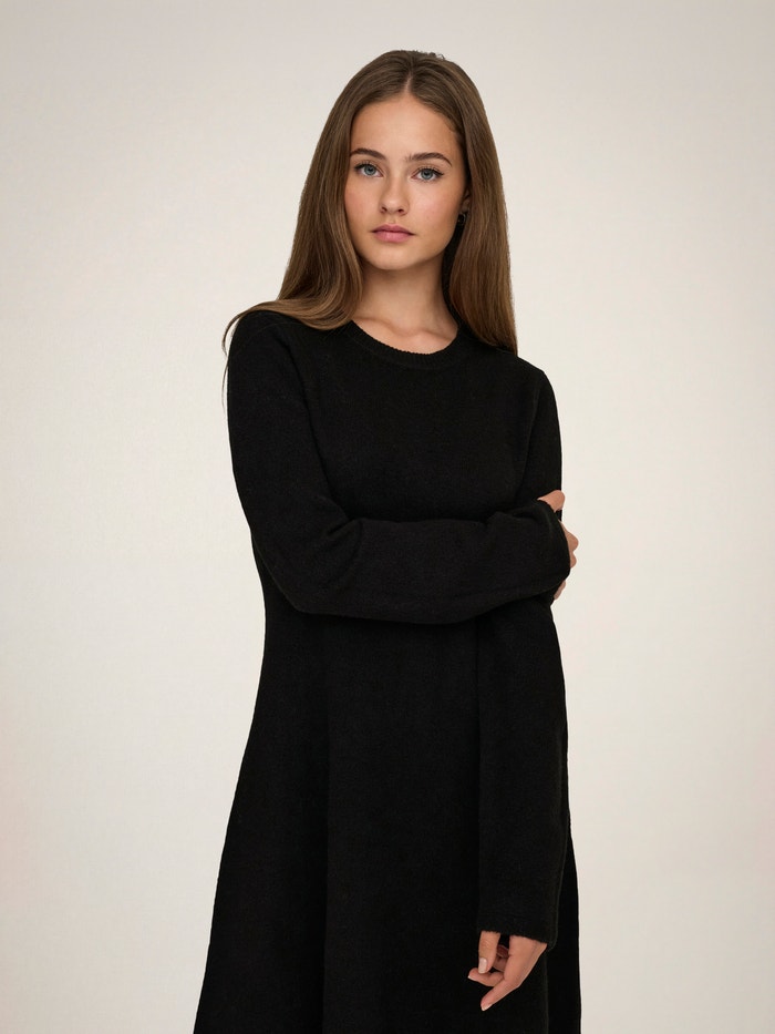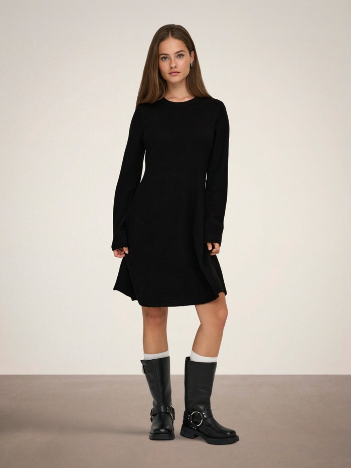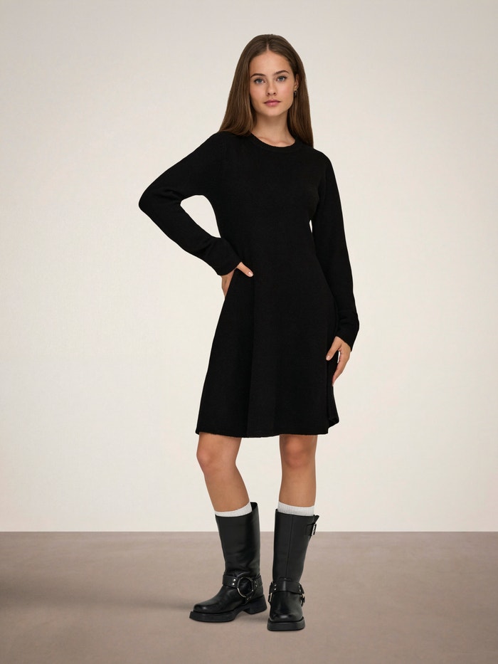 Pregătește-ți garderoba pentru zilele reci cu o rochie tricotată minunată, asortată perfect cu o pereche de colanți sau blugi.