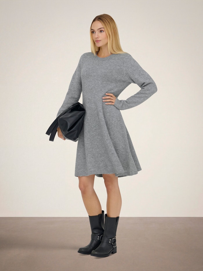 Pregătește-ți garderoba pentru zilele reci cu o rochie tricotată minunată, asortată perfect cu o pereche de colanți sau blugi.