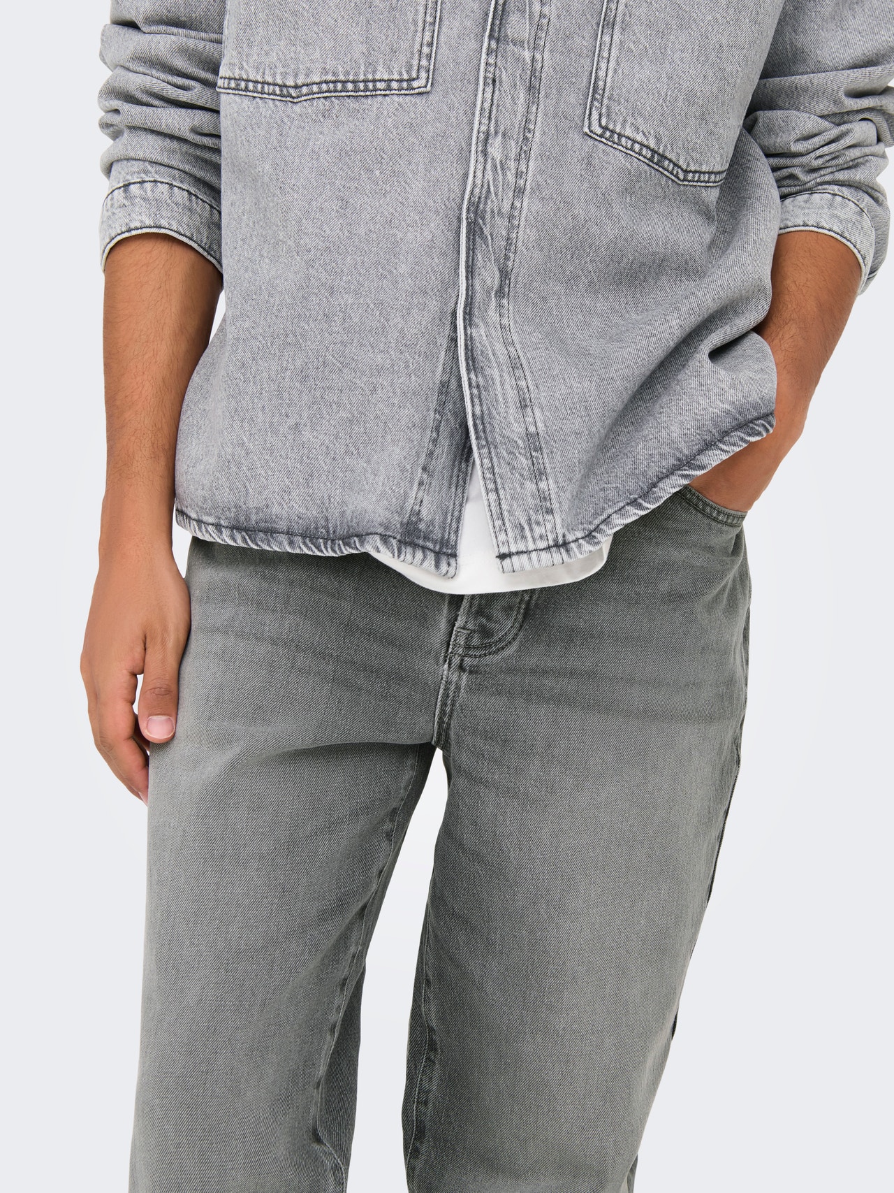 - Spălare/finisare : Mid wash pentru un aspect denim spălat și uzat
