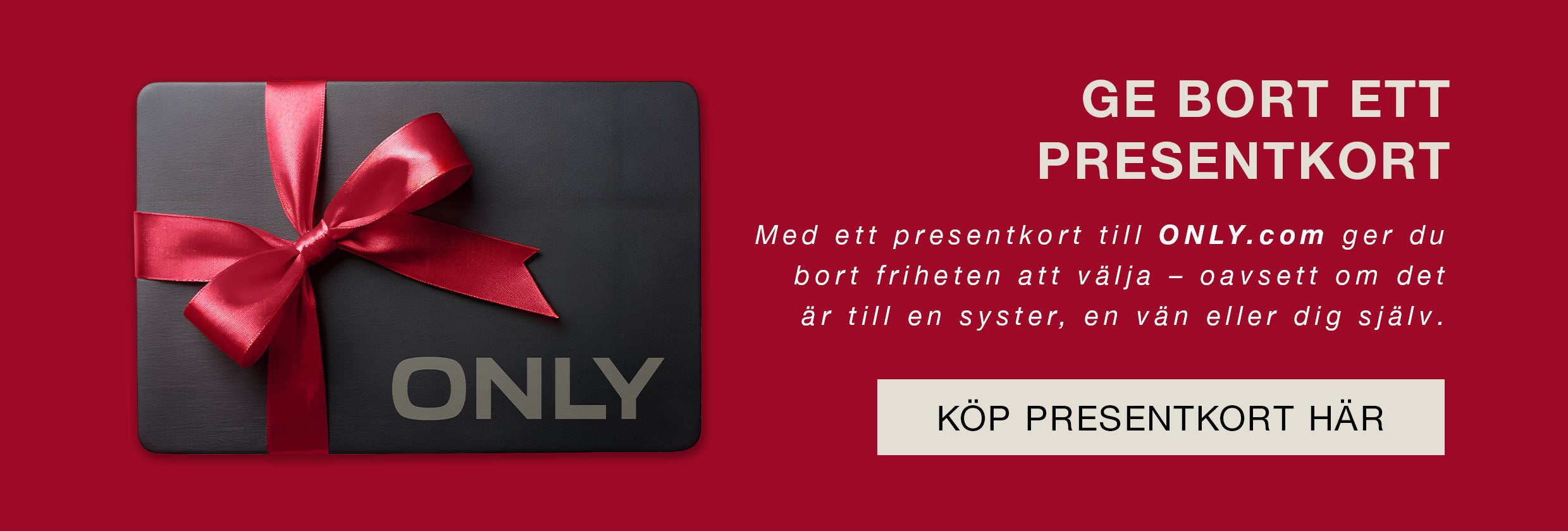 Hos ONLY, tror vi at alle fortjener stilige klær. Vår julekolleksjon er full av trendy plagg som kombinerer kvalitet og verdi. Enten du ser etter siste mote til kjæresten din, kona di, en venn eller noe feststemt for julesesongen, så har vi noe for alle. Fra behagelige julegensere til elegante festkjoler og komfortable julepyjamaser i tradisjonelt rødt og grønt, så har vi det du leter etter. Ikke sikker på hva du skal velge? Ta en titt på gaveguiden vår, hvor du finner gaveideer til alle budsjett, eller la dine kjære velge sin perfekte style med et ONLY-gavekort.