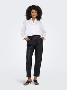 Nájdite si dokonalý pár nohavíc a skombinujte ich s jednoduchým tričkom a teniskami na každodenné nosenie alebo ich skombinujte so slávnostným topom a podpätkami na večer. Vyrobené z mäkkej, vysokoúčinnej elastickej tkaniny, ktorá zaručuje dokonalé prispôsobenie a celodenné pohodlie. - Druh výrobku : Nohavice zo syntetickej kože - Vrecká : Bočné vrecká - Pás : Stredný pás - Extra detaily : Opasok je súčasťou balenia, Pútka na opasok - Strih : Pohodlný strih