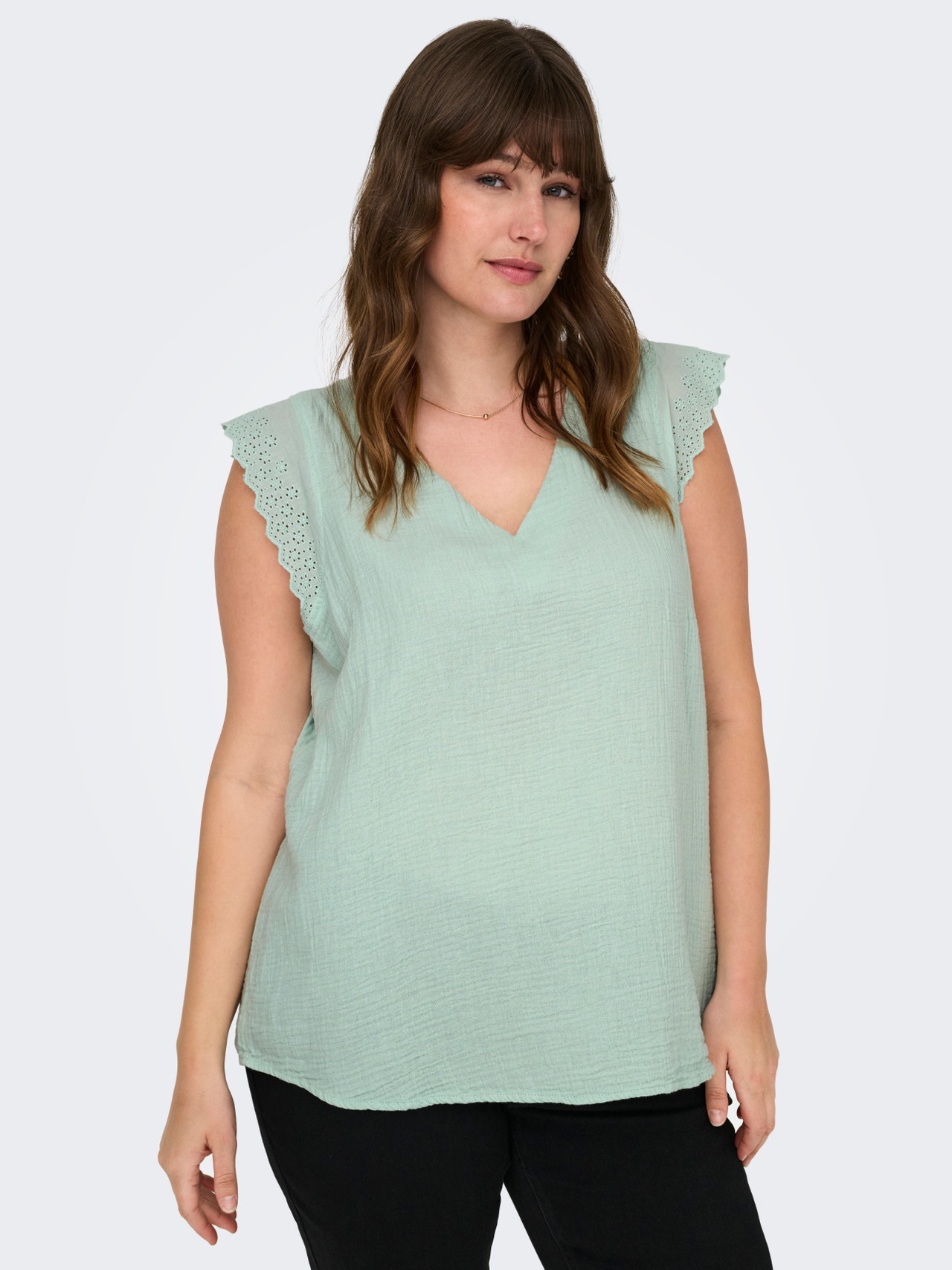 Stačí len sekunda a môžete zmeniť svoj každodenný outfit pridaním ženského topu, ktorý vám dodá jemný a elegantný nádych. Bavlna je vyrobená z prírodných vlákien a vytvára jemnú, priedušnú tkaninu. ONLY CARMAKOMA je pre ženy s krivkami, ktoré milujú módu a sebavedomo vyjadrujú svoj osobný štýl. Kolekcie obsahujú modernú džínsovinu, lichotivé strihy a štýly pre každú príležitosť – od ostrých a cool až po ženské a klasické. Náš výber oblečenia plus size je navrhnutý tak, aby zvýraznil vaše krivky a poskytol pohodlie, takže každá žena plus size sa môže cítiť krásna a sebavedomá vo svojom vzhľade. Štýly Curve sú navrhnuté tak, aby zodpovedali ženským krivkám. - Druh výrobku : Top - Krk : Výstrih do V - Rukáv : Krátke rukávy (S/S) - Extra detaily : Detail čipky - Strih : Pravidelný strih