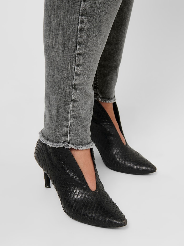 - Prileganje : Krivuljaste ozke kavbojke, ki udobno objemajo vaše noge od bokov do gležnjev