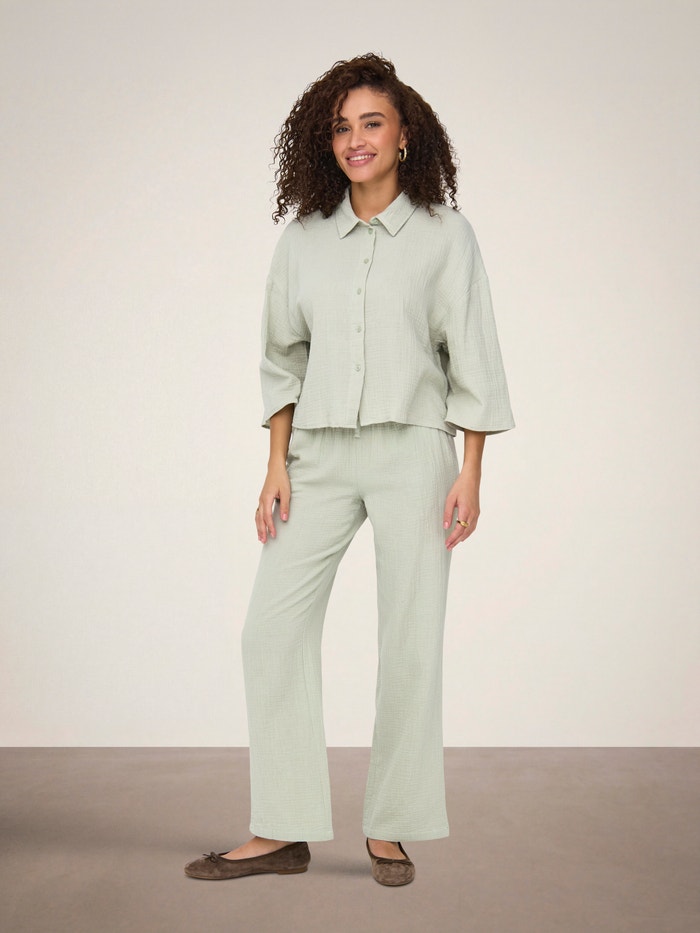 Bombaž je narejen iz naravnih vlaken, ki tvorijo mehko, dihajoče tkanino.