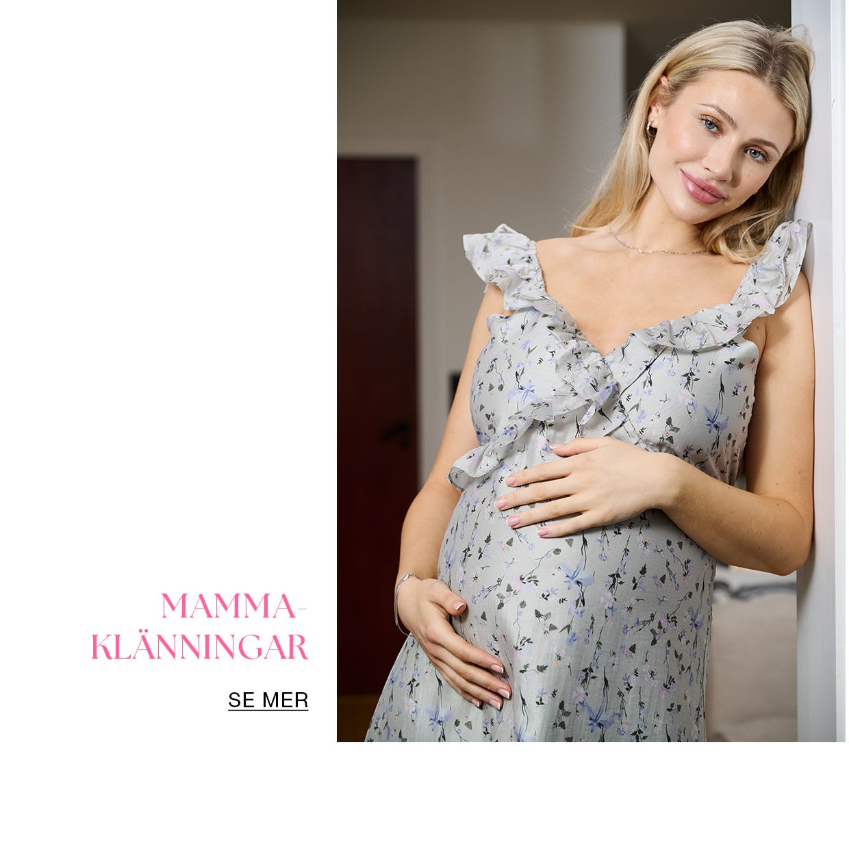 För speciella tillfällen, middagar eller babyshowers, satsa på en mammaklänning eller -kjol. Vår kollektion innehåller både överdimensionerade och mer kroppsnära stilar, så du kan lätt hitta rätt passform. Bär den med din favoritjeansjacka och vardagsskor.