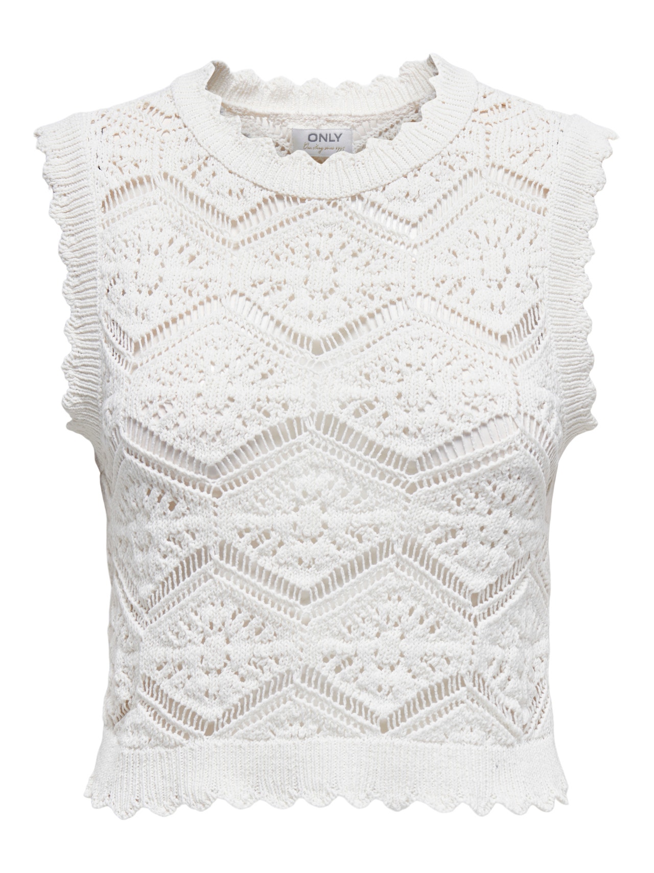 Toppa din look med en tidlös, feminin stickad topp och lägg till mjukhet och värme. - Produkttyp : Stickad topp - Nacken : O-ringning - Ärm : Ärmlös - Detaljer : Vågig detalj - Passform : Normal passform