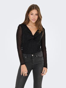 Fira vardagen och speciella tillfällen i en rolig festtopp och matcha den med din favoritkjol eller dina favoritbyxor för en glamourös look. Vävda tyger skapas genom att väva ihop två eller flera garn för en tidlös look. - Produkttyp : Topp - Nacken : V-ringning - Ärm : Långa ärmar - Detaljer : Glitterdetaljer, Knutdetalj - Passform : Slim Fit