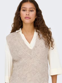 Håll dig varm och mysig med mjuka stickade plagg, perfekta för alla tillfällen och säsonger. Slätstickning är en typ av stickning som kännetecknas av dess flexibilitet, komfort och rena utseende. - Produkttyp : Väst - Nacken : V-ringning - Ärm : Ärmlös - Passform : Normal passform