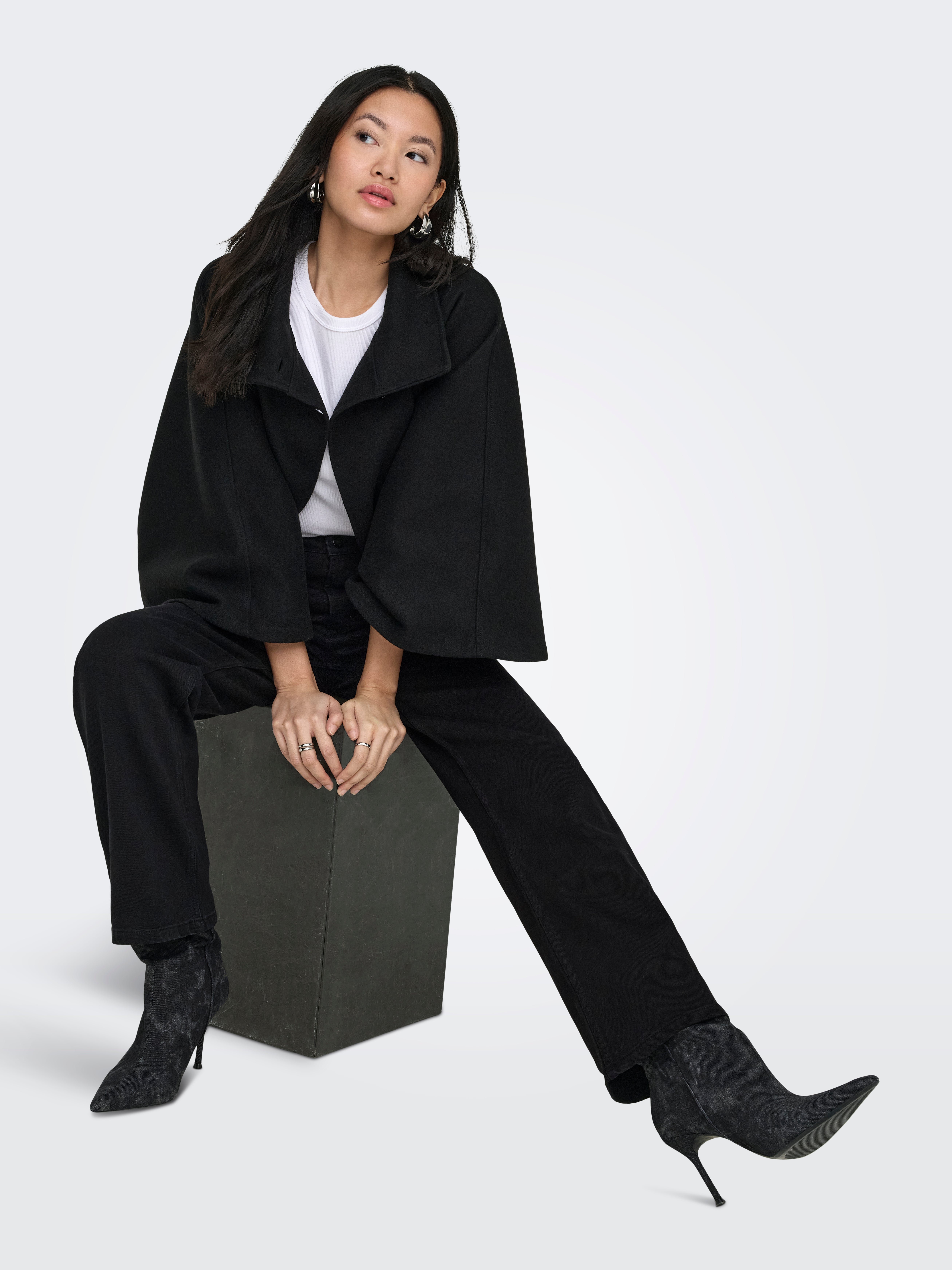 Vår modell är 174 cm lång och bär storlek 27/32