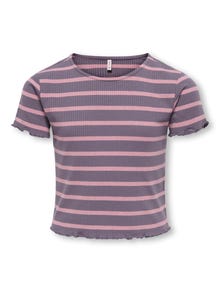 Uppdatera garderoben med en cool T-shirt från ONLY GIRLS - den perfekta toppen för vardagens äventyr! Den här stilen ger en fräsch och feminin twist, perfekt för både skolan och fritiden. Kombinera den med jeans och sneakers för en avslappnad och cool look som utstrålar deras personlighet. Ribb är en typ av stickning som kännetecknas av sina distinkta rader och töjbarhet, vilket skapar en bekväm och tidlös look. KIDS ONLY är ett modemärke för coola barn. Utforska en värld av oumbärliga jeansartiklar, coola street-plagg och andra modefavoriter. - Produkttyp : T-shirt - Nacken : O-ringning - Ärm : Korta ärmar - Passform : Stretch Fit - Observera : VARNING! Håll borta från eld.