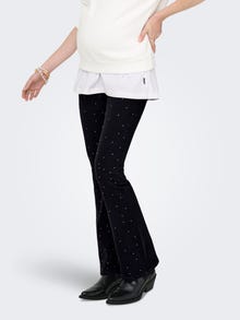 Om du letar efter en feminin och smickrande look under graviditeten är våra mammajeans i utsvängd passform det perfekta valet. De här jeansen har en klassisk smal passform upptill, med en subtil utsvängning under knät som skapar en elegant, benförlängande silhuett. Den bekväma designen över magen ger skonsamt stöd åt magen, och det justerbara midjebandet gör att jeansen anpassar sig efter kroppens förändringar. Styla dem precis som du vill – under hela graviditeten.